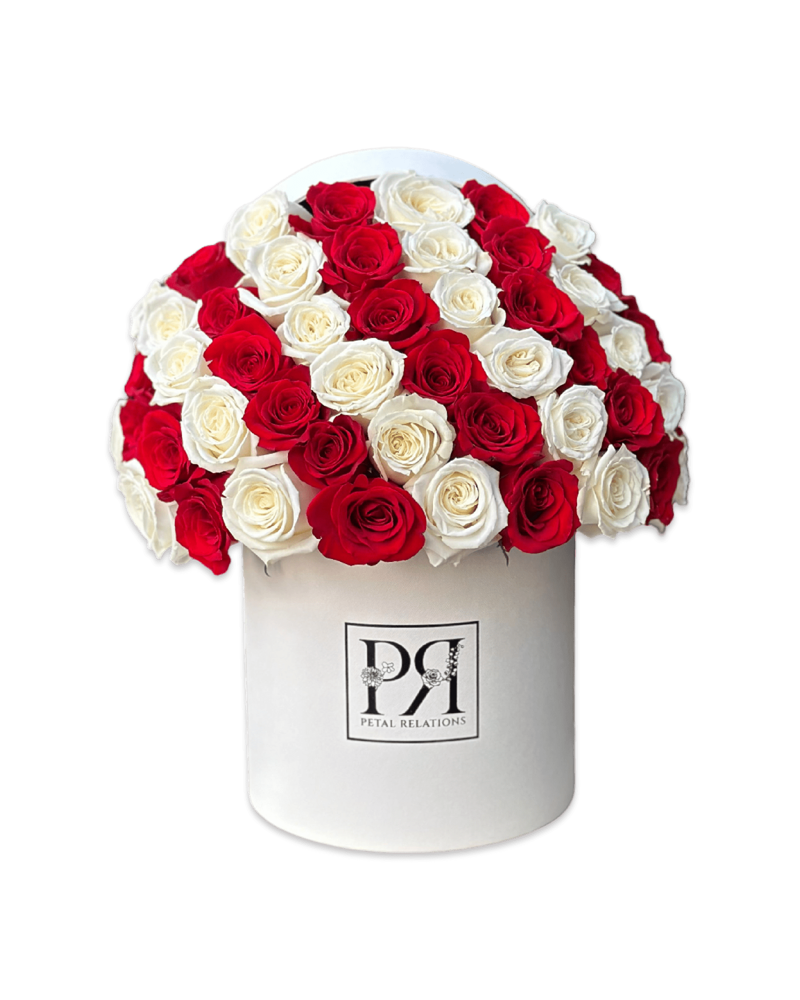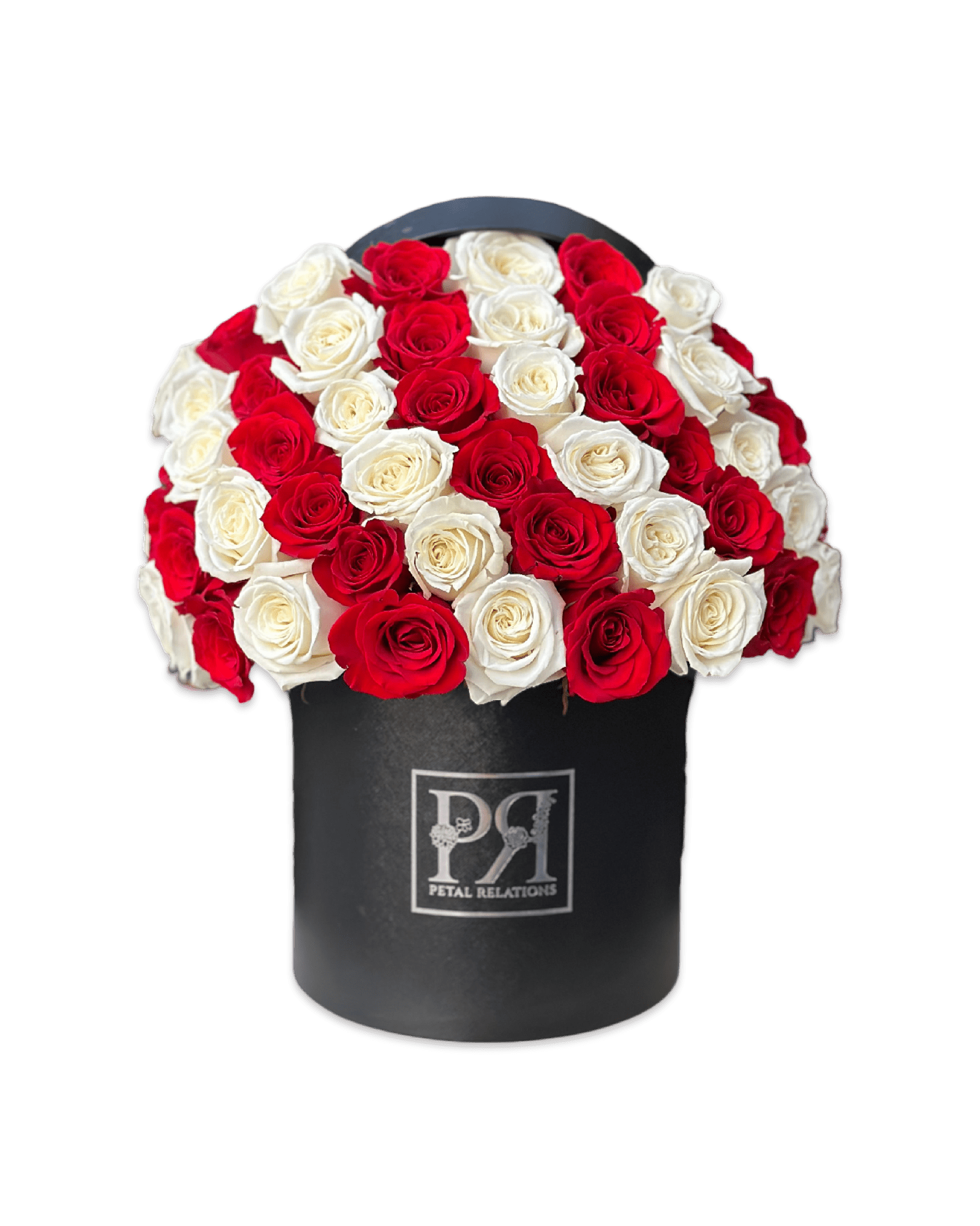 Candy Cane is a festive all-rose arrangement featuring pristine white and bold red roses, artfully arranged in swirling rows to mimic the classic holiday treat. Presented in our signature PR box, this elegant design captures the magic of the Christmas season, making it the perfect gift to spread holiday cheer.