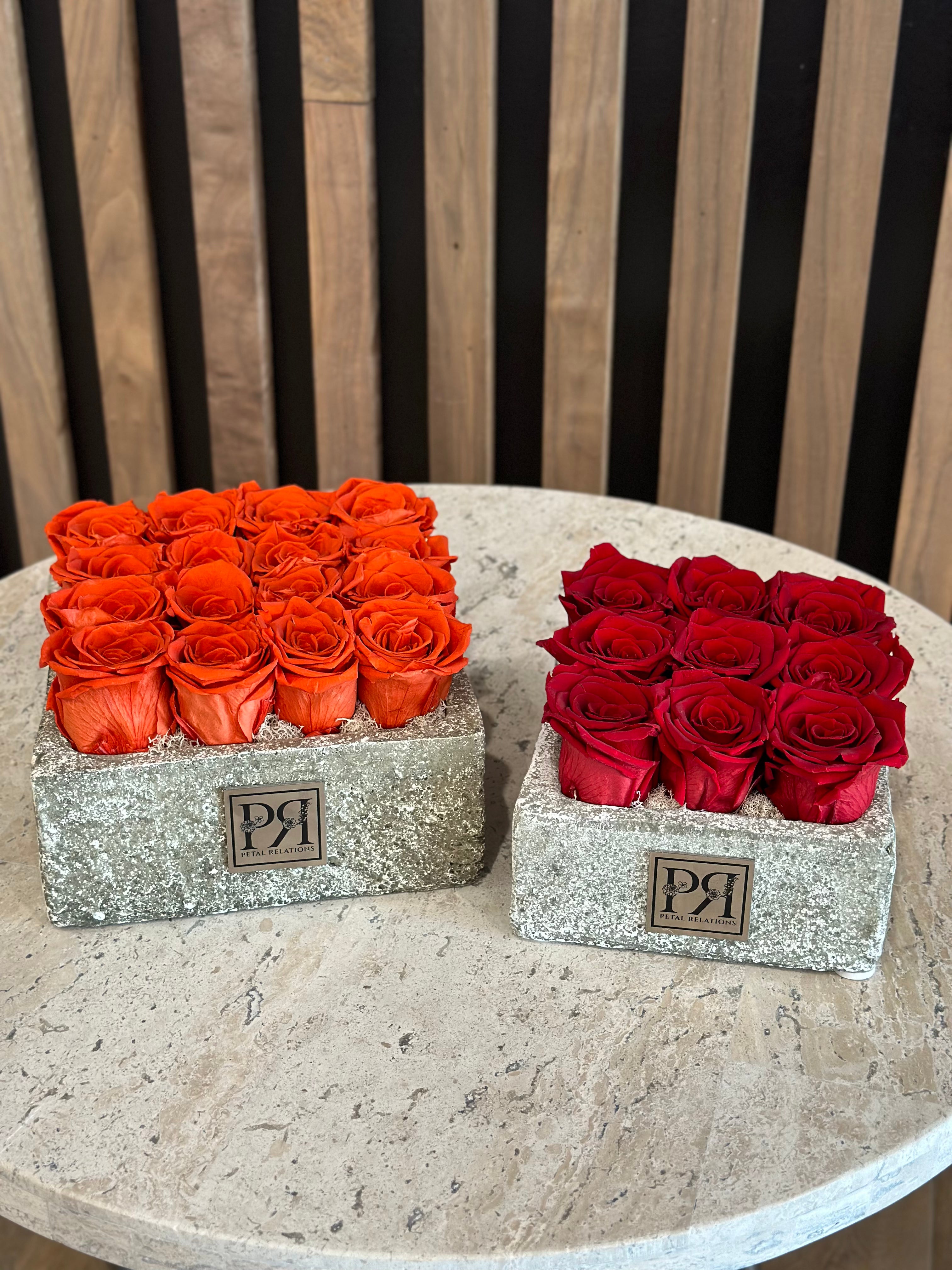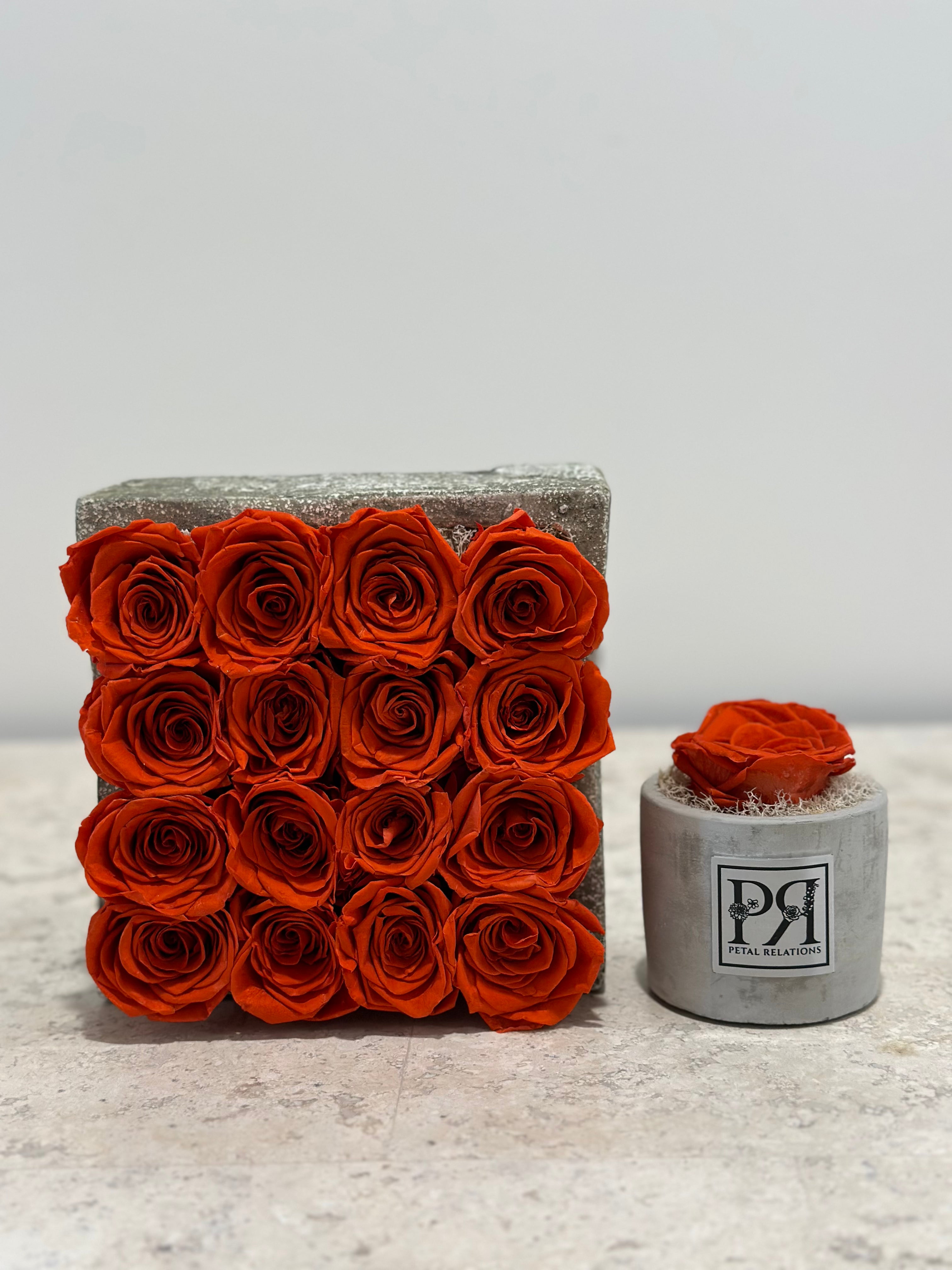 Forever Medium Square from our Preserved Collection is a sophisticated and versatile preserved rose arrangement that brings lasting beauty to any space. Arranged in a contemporary concrete square vase, these roses are designed to last 1+ years with no upkeep needed. Its balanced size makes it a perfect fit for coffee tables, shelves, or entryway consoles.
