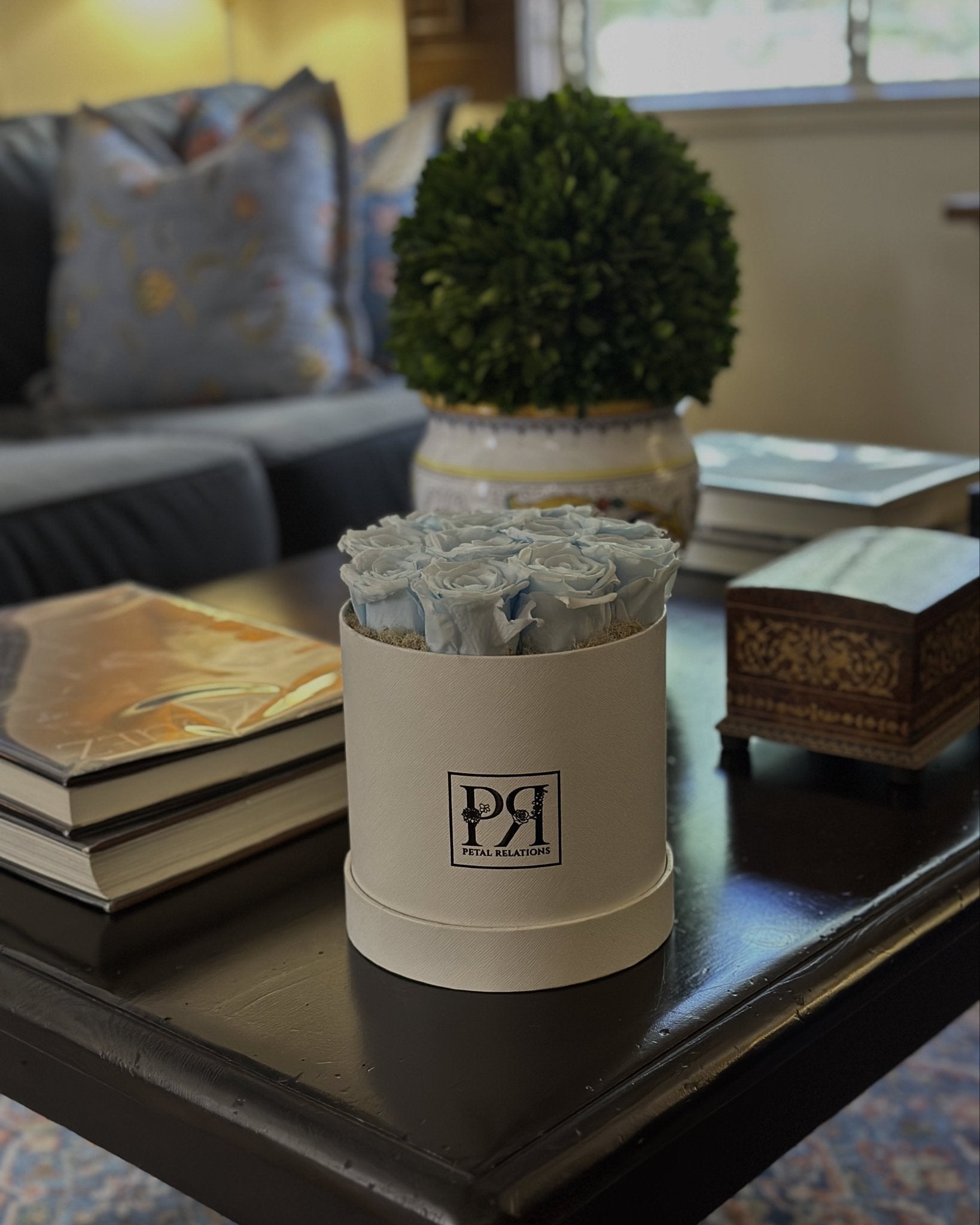 Forever Round in a Box from our Preserved Collection is a sophisticated and timeless arrangement, featuring preserved roses elegantly arranged in our signature PR box. Whether placed on a nightstand, coffee table, or office desk, it’s a stunning way to enjoy long-lasting blooms.