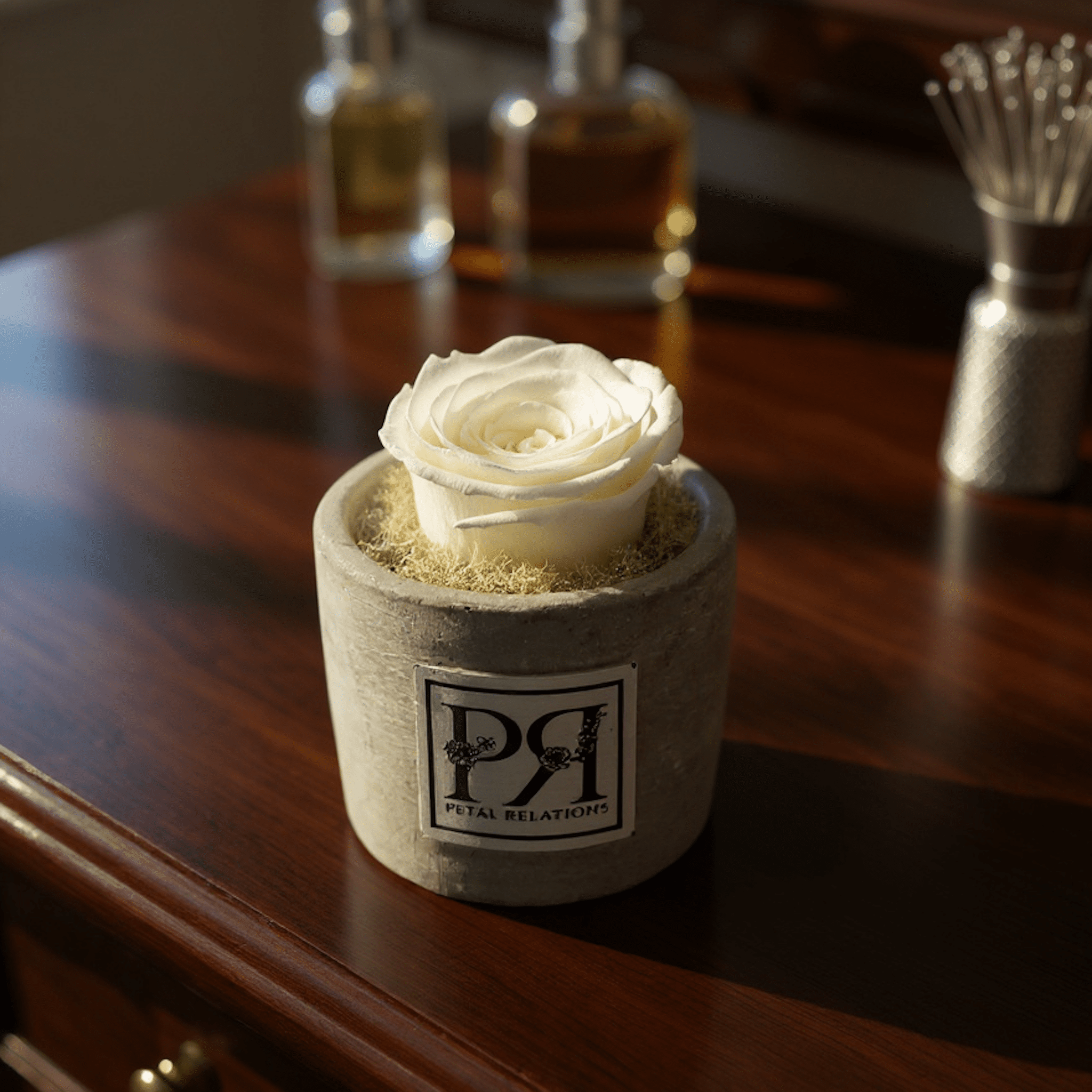 Our Single Forever Rose is a timeless expression of elegance designed to last far beyond the moment. Featuring one hand-selected rose, expertly preserved and set in our signature concrete vase, this minimalist piece highlights the natural beauty and form of the bloom. Offered in a wide range of colors, each rose is carefully preserved to maintain its softness, shape, and vibrant tone with no maintenance required. Effortless and meaningful, the Single Forever Rose is perfect for promotions, birthdays, apologies, or a thoughtful “just because” gesture—an enduring symbol of love, beauty, and intention.