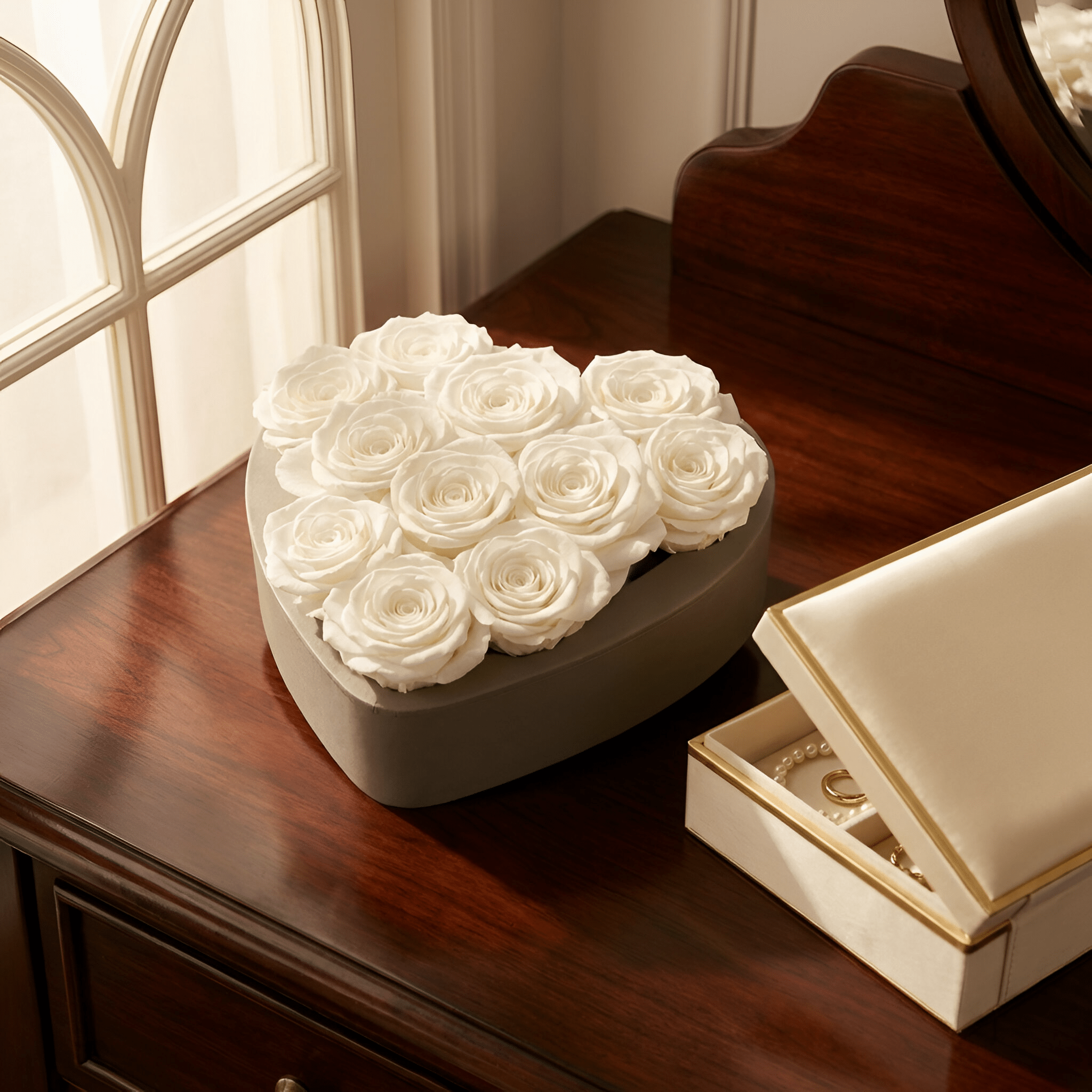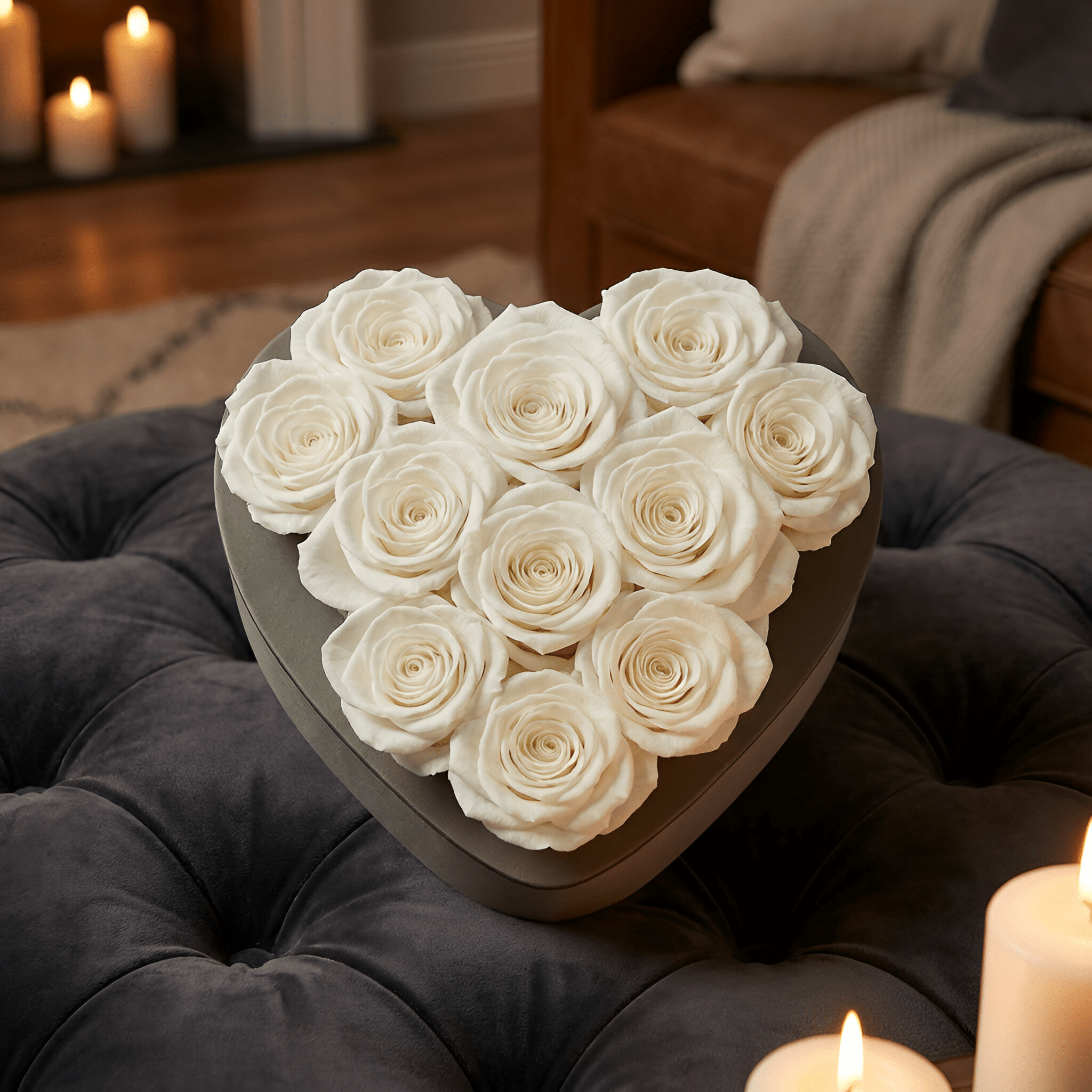 Our Forever Preserved Heart is artfully arranged with premium, real roses that are preserved at peak bloom to maintain their velvety texture and rich color for 1+ Years. Set in a refined heart silhouette, this statement piece brings an effortless touch of romance to nightstands, shelves, and entry tables, no watering or maintenance required. Each arrangement is thoughtfully finished in our signature Petal Relations style and arrives gift-ready for anniversaries, proposals, birthdays, and milestone moments.