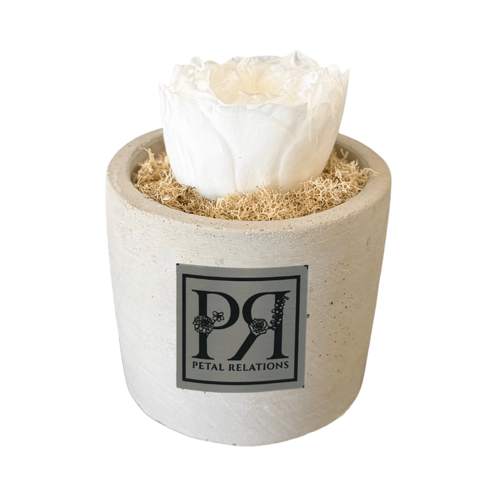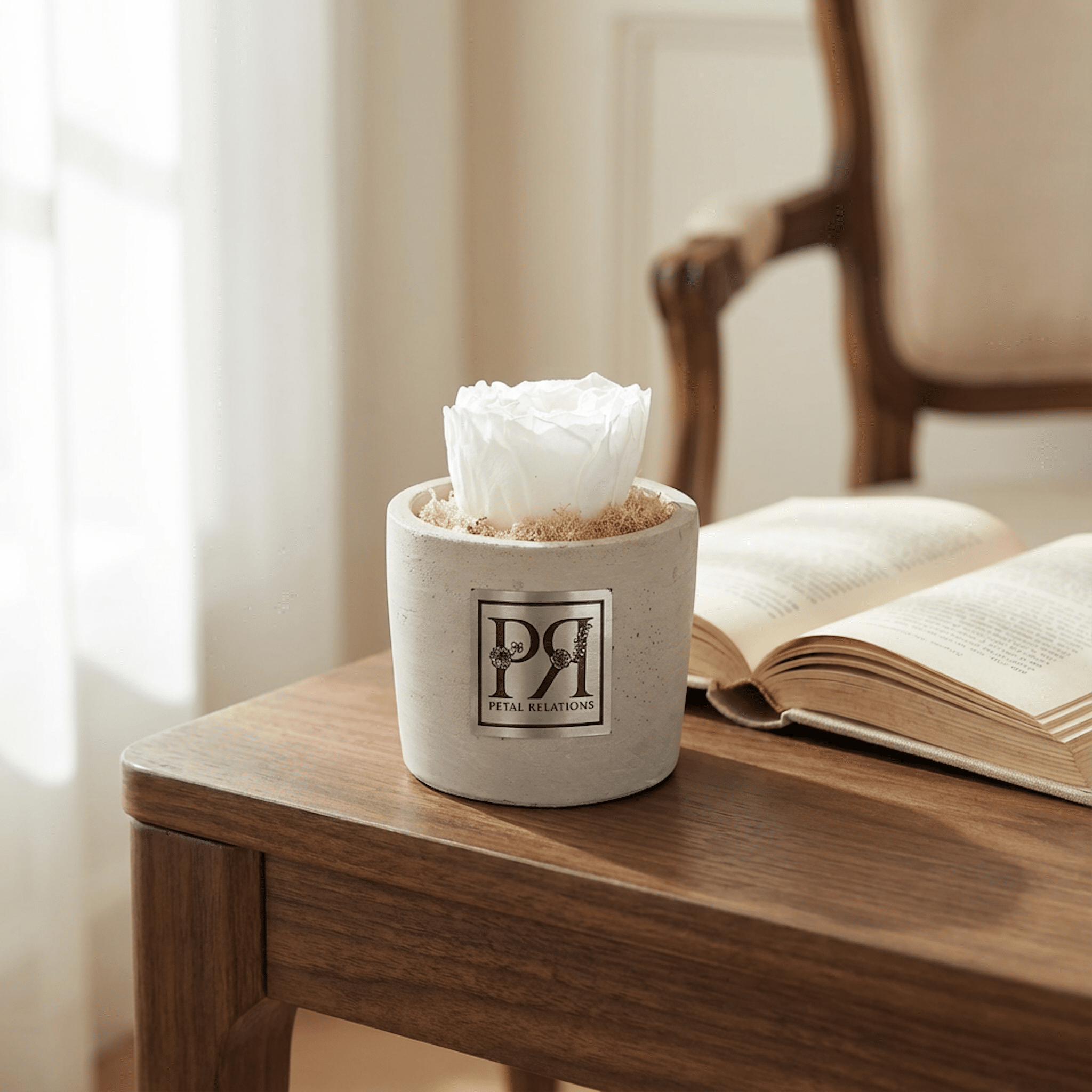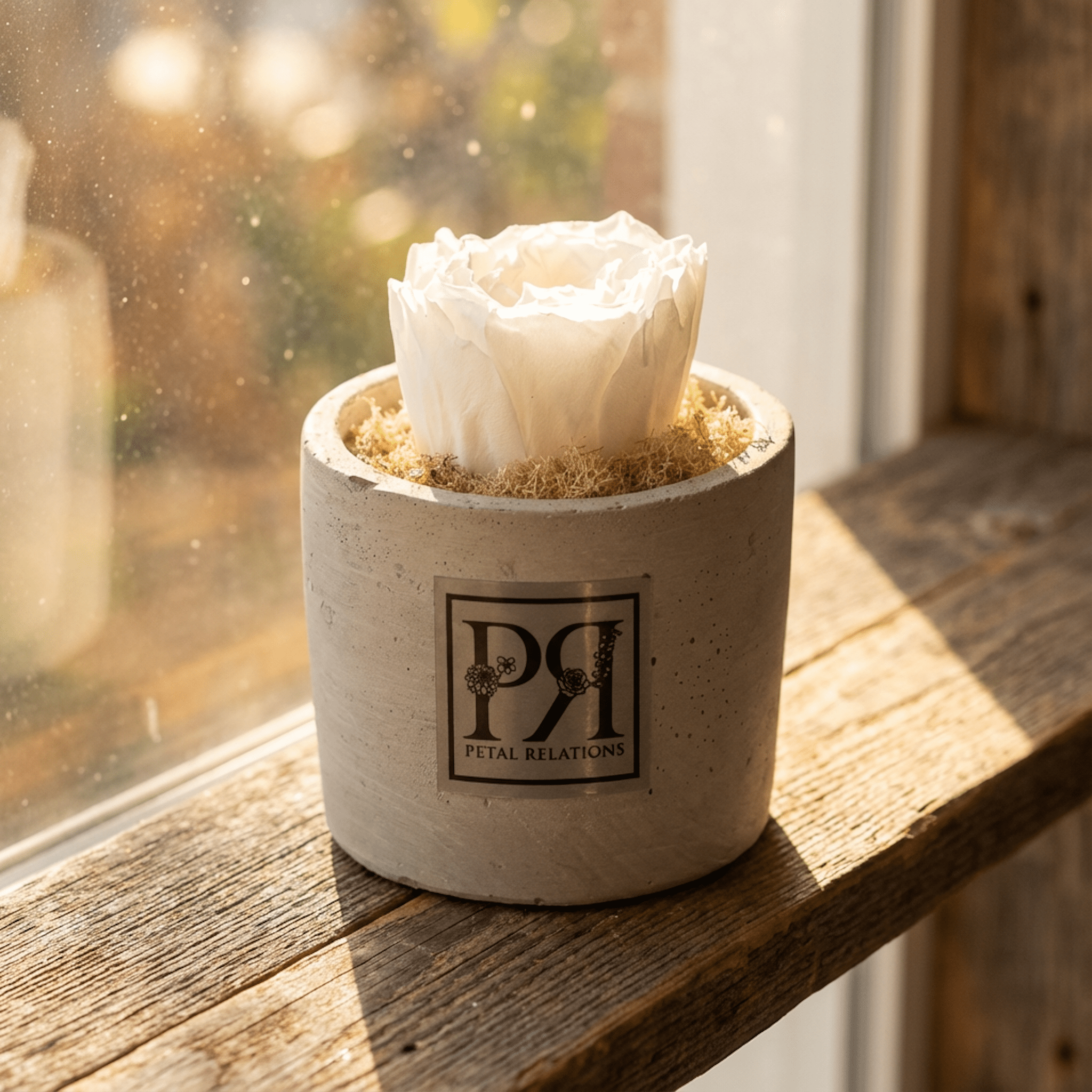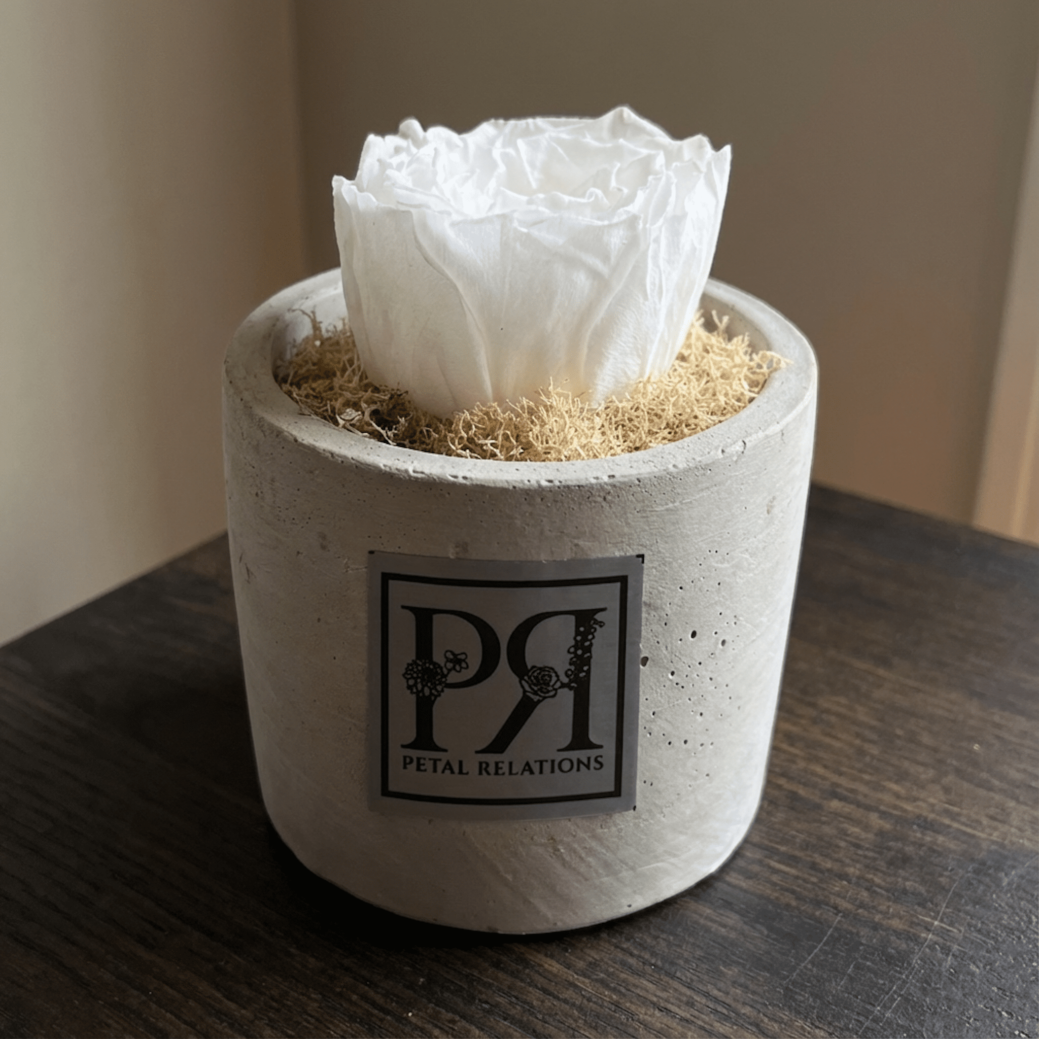 Our Single Forever Garden Rose is a minimalist, modern expression of beauty designed to last far beyond the moment. Featuring one hand-selected rose, expertly preserved and set in our signature concrete vase, this timeless piece celebrates simplicity and intention. Available in white, pink, sky blue, and red, each rose is carefully treated to maintain its natural look and texture without the need for water or maintenance. Effortless yet meaningful, the Single Forever Garden Rose is perfect for anniversaries, birthdays, apologies, or a thoughtful ājust becauseā gestureāan enduring symbol of love, care, and elegance.