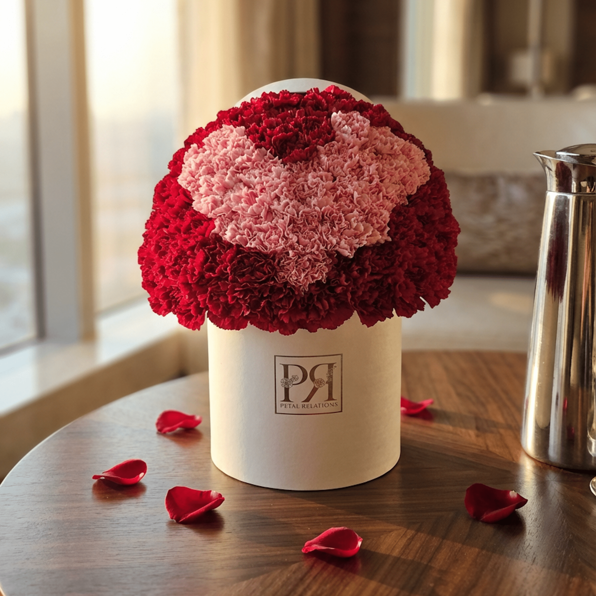 Bold yet tender, Sweet Heart is a playful all-carnation arrangement that turns florals into a love note. Featuring a sculpted pink heart outlined in vibrant red carnations, this signature PR box piece delivers charm and meaning all in one. Perfect for birthdays, anniversaries, or anytime you want to say "I heart you" in a fun and unexpected way.