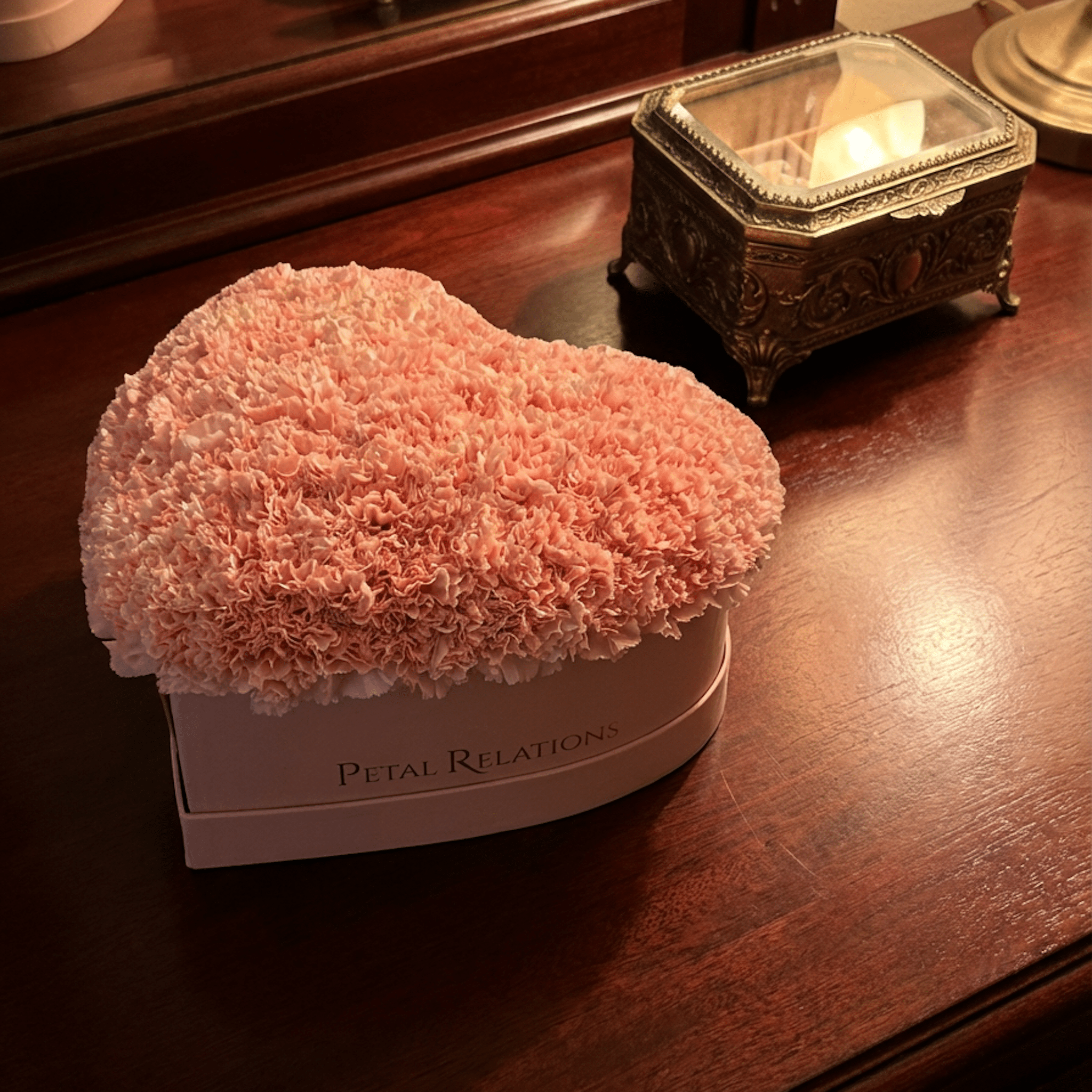 My Heart is the ultimate love arrangement, featuring a stunning 3D design of lush carnations in our signature PR heart box. This elegant and romantic display is available in white, pink, and red, allowing you to personalize it for any special occasion. A true symbol of love and devotion, this arrangement makes the perfect heartfelt gift for birthdays, anniversaries, or anyone who deserves a grand expression of affection.